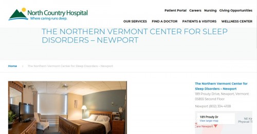 Summary: The Northern Vermont Center for Sleep Disorders is located at 189 Prouty Drive in Newport, Vermont, 05855. It is categorized as Sleep Clinic, Sleep Therapy, Sleep Medicine and it offers medical services for Sleep Apnea, CPAP Therapy, Insomnia, Narcolepsy and Sleep Disorders Treatment.