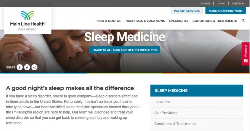 Summary: Main Line Health Sleep Medicine Center is located at 3855 West Chester Pike, Suite 215 in Newtown Square, PA 19073. It is categorized as Sleep Clinic, Sleep Therapy, Sleep Medicine and it offers medical services for Sleep Apnea, CPAP Therapy, Insomnia, Narcolepsy and Sleep Disorders Treatment.