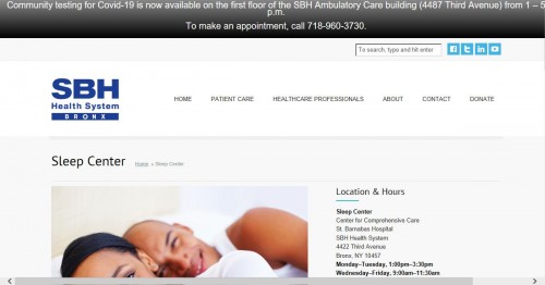 Summary: The Center for Sleep Medicine at St Barnabas Hospital is located at 4422 Third Avenue in Bronx, New York, 10457. It is categorized as Sleep Clinic, Sleep Therapy, Sleep Medicine and it offers medical services for Sleep Apnea, CPAP Therapy, Insomnia, Narcolepsy and Sleep Disorders Treatment.